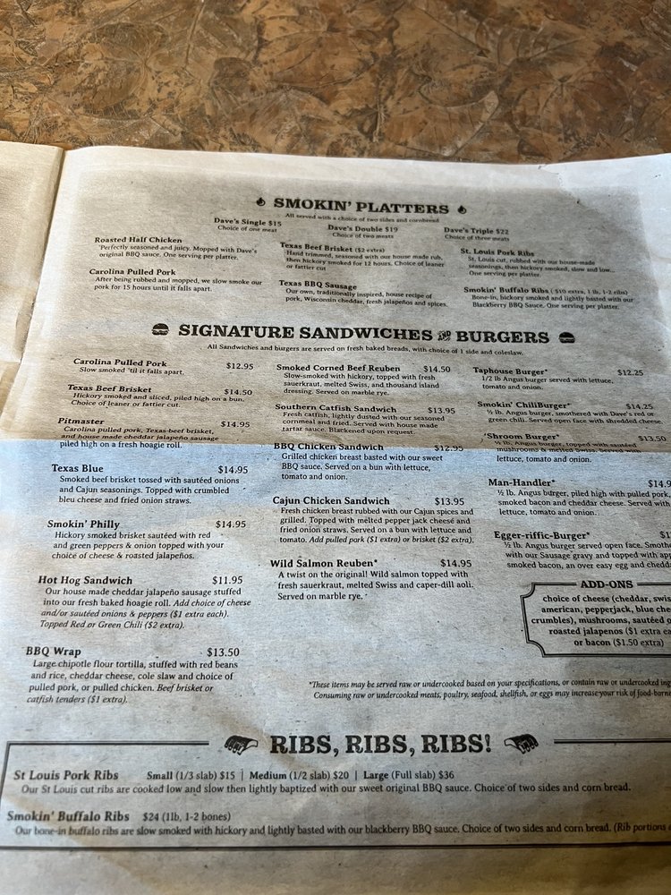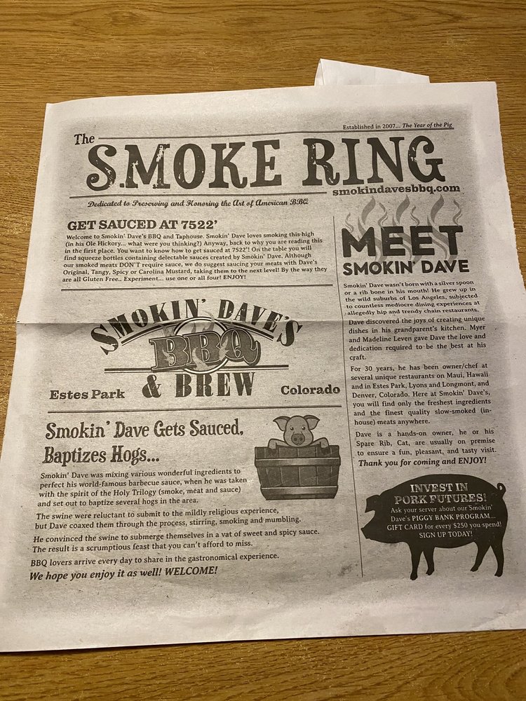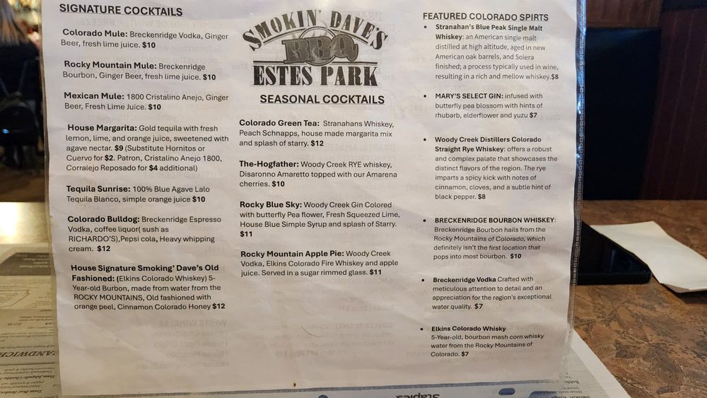 Smokin' Dave's BBQ in Estes Park, Colorado, is a must-visit for BBQ lovers. Offering a wide range of options for both meat-eaters and vegetarians, this restaurant promises a delightful dining experience. The appetizers, such as the Smokin' Rings and Bubba-Que Wings, set the tone for a flavorful meal. The BBQ Nachos and Mile High Cheese Fries are perfect for sharing with friends. For main courses, the Pecan Crusted Trout and Chicken Fried Steak showcase the diversity of flavors at Smokin' Dave's. The attentive service and cozy atmosphere add to the overall appeal of this establishment. Don't miss out on the opportunity to savor authentic BBQ dishes in a welcoming setting.